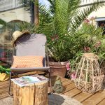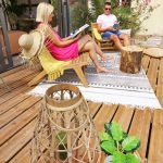 Une terrasse de 4 mètres de large et 1,20 m de profondeur, en lames de bois autoclavées brun classe 3 avec luminaire