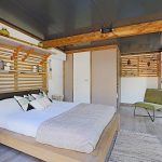 Une ambiance moderne et chaleureuse avec ses aménagements bois. Possibilité d’ajouter la cuisine en module supplémentaire.