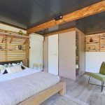 Une ambiance moderne et chaleureuse avec ses aménagements bois, parfaitement adaptée pour l’utiliser en chambre d’amis.